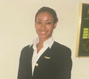 Dawn Michelle Hunt in a flight attendant uniform. Image provided by the Hunt family.