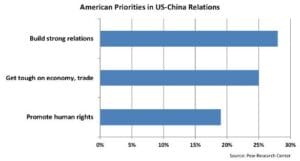 In September 2012, however, the Pew Global Attitudes Project conducted a poll of American attitudes asking specifically about human rights in China. Querying how important promoting human rights was for US policy towards China, 53 percent of the general public said that it was “very important,” while an additional 28 percent called it “somewhat important.” Choosing between the very important issues they identified, 19 percent of respondents selected promoting human rights as “most important.” This was the third most popular selection, lagging nine points behind the leader, “build[ing] a strong relationship with China,” and six points behind “be[ing] tough” on economic and trade issues.